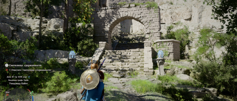 Расположение и решение головоломки Сначала убейте всех врагов вокруг святилища. Далее нужно восстановить питание Святилища смирения — это первое святилище и единственное, которое придется восстановить по сюжету. Остальные
