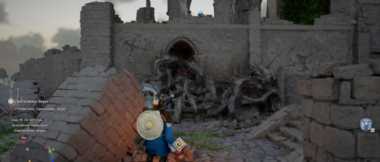 Расположение и решение головоломки Расположение святилища показано на скриншоте ниже: Убейте всех врагов вокруг святилища. После освобождения вы снова окажетесь у входа. Пройдите через две арки и войдите
