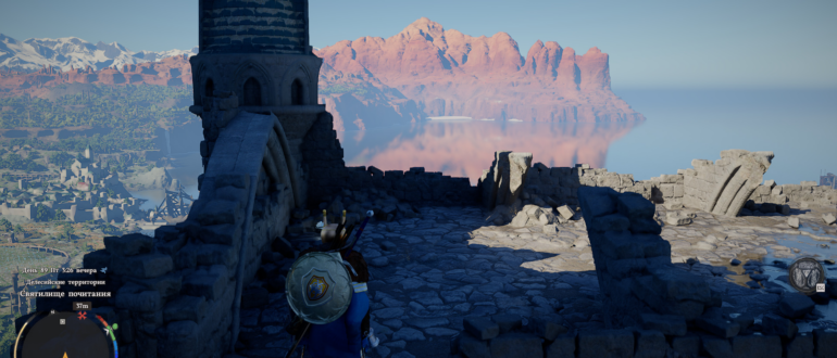 Расположение и решение головоломки Расположение святилища показано на скриншоте ниже: Убейте всех врагов вокруг святилища. После освобождения вы окажетесь на верхнем уровне руин. Посмотрите на север и спрыгните