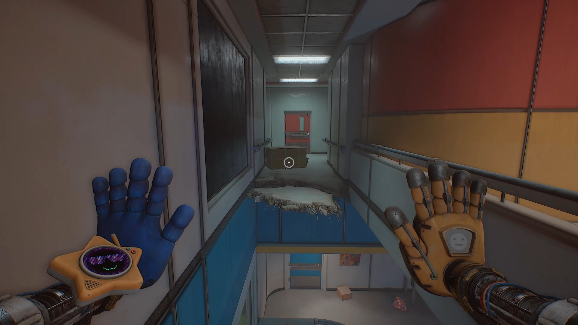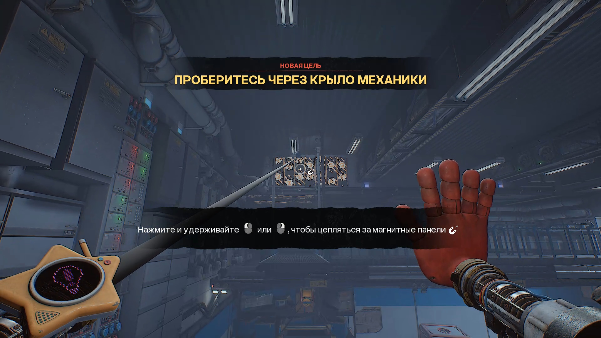Получив руку-давилку, вернитесь в помещение с Броном и передвиньте тележку с зелёной ладонью так, чтобы она оказалась примерно по центру. Используя подвесной контейнер, перепрыгните к правой стороне прохода, ведущего к вентиляционной решётке, которую вы сломаете по сюжету. Там и спрятана аудиокассета.