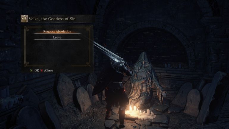 Спускаемся в подземелья Поселения нежити и используем Могильный ключ на запертой двери. Там вы найдете Святыню Велки, которая за огромную плату отпустит вам все ваши грехи.