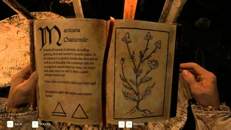 Умея читать, можно отправиться к любому алхимическому столу — например, у травницы к северу от деревни Ледечко — и наделать себе десяток спасительных шнапсов, рецепт которых вы к тому времени уже получите по сюжету. Все компоненты (крапива и беладонна) можно купить тут же и недорого.