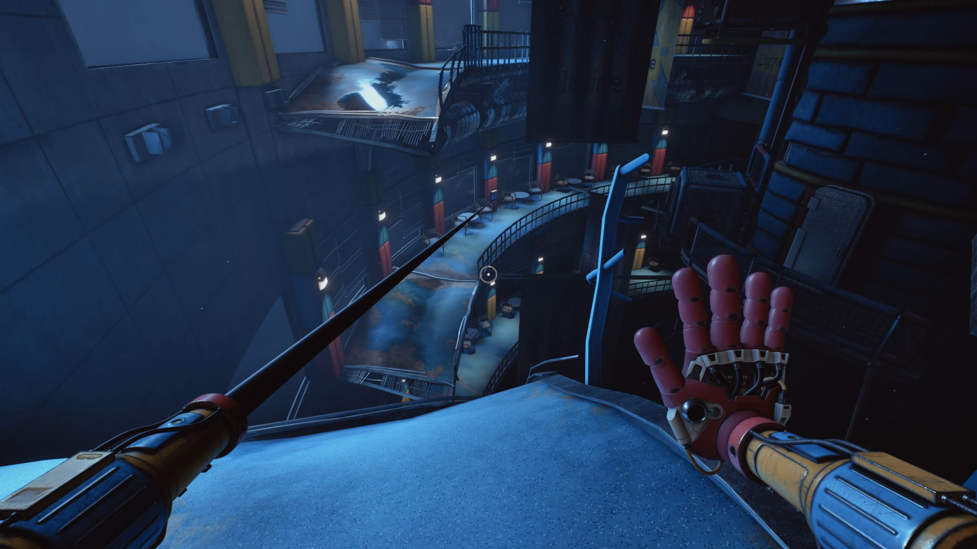 В разрушенном коридоре, где перемещение осуществляется при помощи магнитных панелей, после первого рывка обратите внимание на трубу с вырывающимся огнём слева. Продвиньтесь дальше, войдите в соседний проход, притянитесь к потолку и поверните вентиль — это перекроет пламя. Вернитесь назад и пройдите за трубу в небольшую комнату с запиской. Затем отступите на пару шагов и спрыгните в яму возле трубы: под настилом скрыта очередная кнопка.