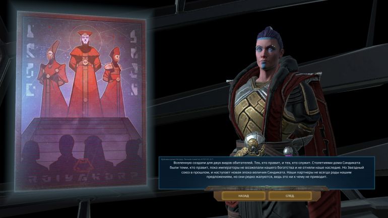 Среди командиров будут Цзян, Валентайн и Сина. Для Сины нужны ресурсы. Вы можете сгенерировать 500 единиц сырья в своих колониях. Чуть позже появится агент Синдиката. Он скажет, что на этом требования Сины не закончатся, и предложит альтернативный вариант: нужно узнать, как Сина получила трон в доме Тимур, в результате чего та станет более сговорчивой.