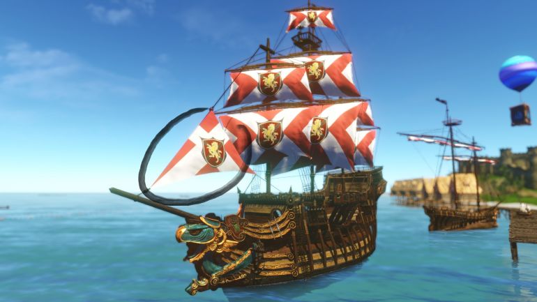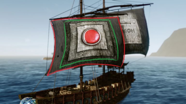 При использовании герба на двойные или тройные пару, на каждом из парусов будет одна и та же картинка. Чтобы нанести рисунок на парус в передней части фрегата, необходимо использовать штамп на сам фрегат в инвентаре.