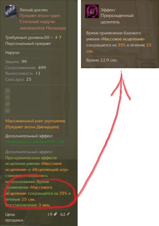 Стеганые наручи завоевателя Нагашара ничем не хуже, а даже лучше тканевых. Они также увеличивают устойчивость к атакам в PvP на 333 ед., а вместо интеллекта дают выносливость и силу духа. Для хилов эти наручи хороши тем, что если срабатывает критический эффект исцеления, то у «Массового исцеления» (исцеление) и «Исцеляющего хора» (воодушевление) сбрасывается откат и навыки сразу же становятся доступны для использования. Кроме того, накладывается эффект «Прирожденный целитель», который сокращает время применения умения «Массовое исцеление» на 35% в течение 25 секунд.