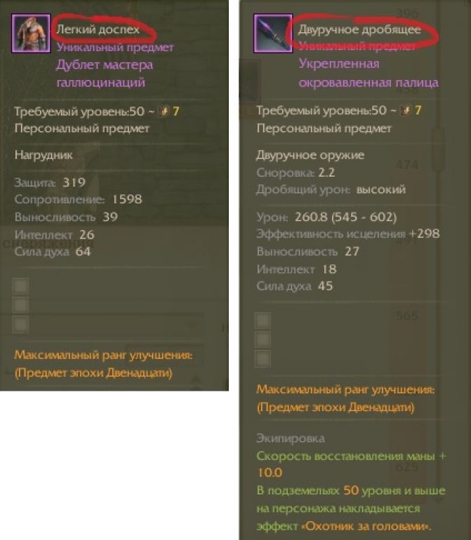 Не стоит особо задумываться об экипировке вплоть до 50 уровня. Достаточно того, что дают по сюжетной линии квестов или выпадает в инстансах. Выбор всегда должен останавливаться на легких доспехах и дробящем оружии. Тип указывается в самом верху описания при наведении на предмет.
