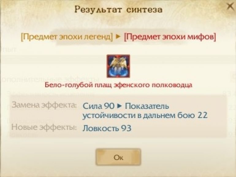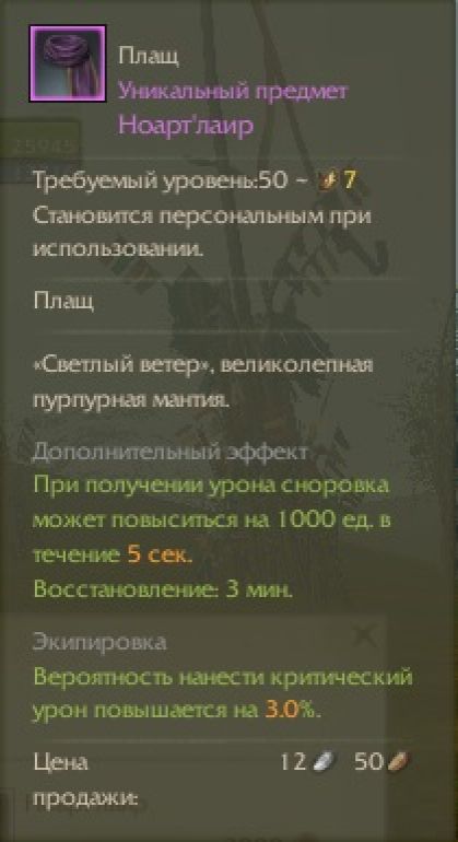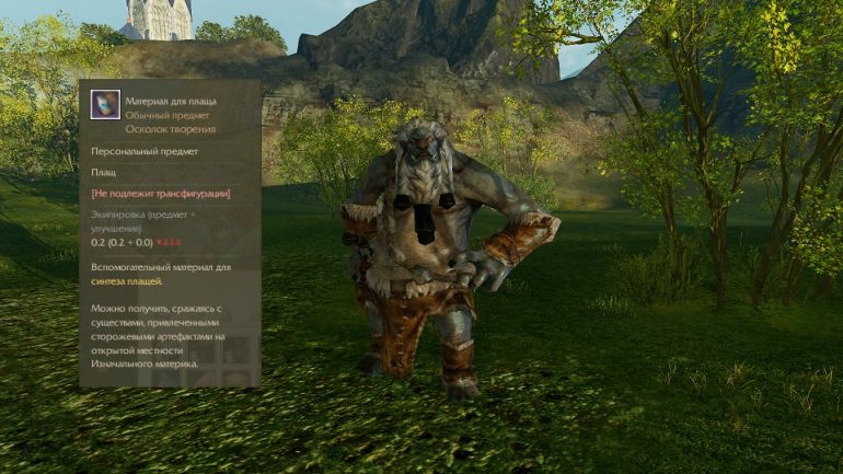 В лавке гильдии продается длинный пепельно-серый плащ на силу духа за 150 вклада. Его не получится улучшить с помощью свитков, так как он улучшает с помощью синтеза. Для синтеза подходят другие плащи, но в основном используются Осколки творения и Фрагменты творения (от обычного до легендарного качества). Осколки можно выбить с горнийских великанов, которые находятся под западным и восточным артефактом на Сверкающем побережье. Выбивать их лучше во время войны, так как в это время увеличиваются шансы дропа. Максимум можно улучшить плащ до эпохи чудес (необязательно до 100%).