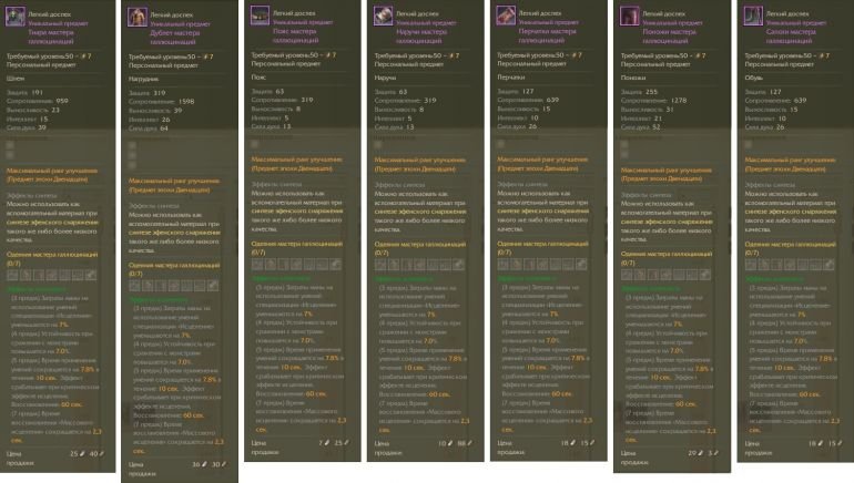 - Нижнее белье: янтарная гравировка на время применения умений.