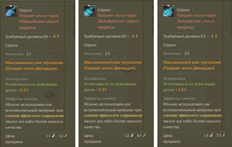 Серьга с Библиотеки Эрнарда идеальна для хилов, но ее очень сложно получить. Сложность состоит в том, что нужно уделять раз в неделю много часов на убийство мобов и прохождение инстансов. Кроме того, требуются напарники, которые тоже делают серьгу, так как в часть наиважнейших инстансов для улучшения серьги просто закрыты для тех, кто не имеет серьги нужного качества (например, в скрытый инстанс на первом этаже может войти только персонаж с редкой серьгой). В основном для серьги требуются ресурсы за выполнение ежедневных заданий, за убийство мировых боссов библиотеки и прохождение инстансов внутри библиотеки (не считая ресурсов, которые получаются за 500 дельфийских звезд и за рассыпание бижутерии).