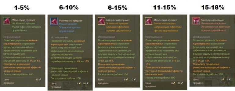 - С помощью эфенской призмы оружейника можно увеличить урон оружия до 118%, а у щита защиту или сопротивление. Призма бронника позволит также увеличить защиту и сопротивление у шлема, нагрудника, пояса, наручей, перчаток, поножей и ботинок.