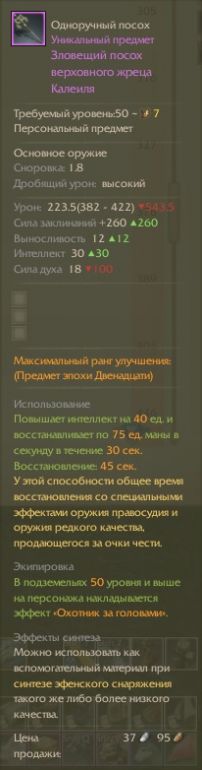 Примечание: в инстансе «Воющая бездна» из сундука третьего босса можно получить «Посох верховного жреца Калеиля», который после перекрафта при использовании восстанавливает некоторое количество маны, что сократит использование банок и еды на ману. Не стоит использовать его для перекрафта, а лучше оставить для восстановления маны.