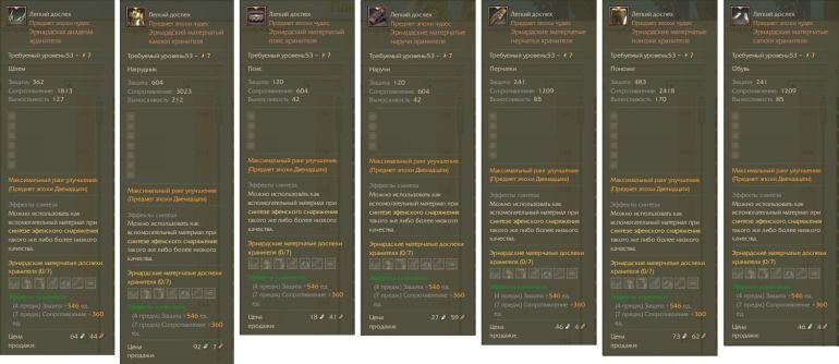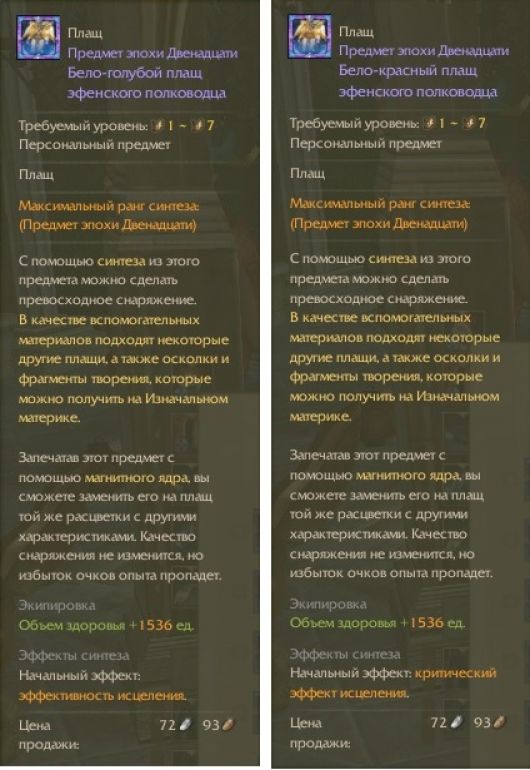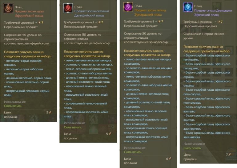 - Эфенский плащ (требуется эрнардский плащ качества эпохи легенд).