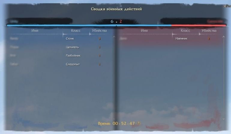 Итоги войны видны всем игрокам на сервере, даже если они находятся в инстансе. Первой гильдией отображается та, кто объявил войну второй.