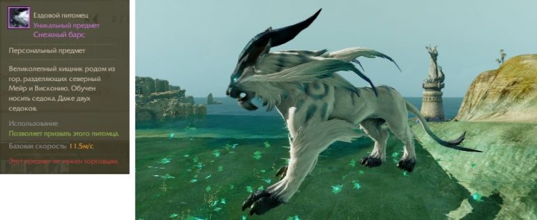- Снежный барс (2 000 вклада) — ездовой питомец с базовой скоростью 11.5 м/с.