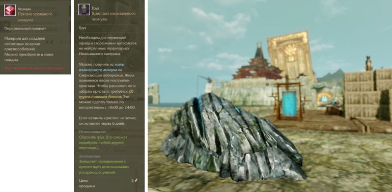 По воскресеньям с 18:00 до 0:00 становится доступна «Жила изначального акхиума» у факторий Сверкающего побережья. Для создания груза необходимо расколоть жилу с помощью 20 грузов сияющих блоков, а после чего станет доступно создание груза из 50 призм кровавого акхиума и 100 слитков анадия. Груз необходимо доставить в одну из осадных локаций для активации сторожевого артефакта.
