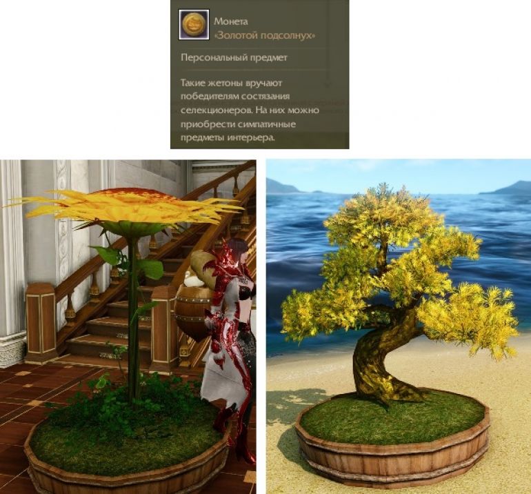 Суть экспериментальных клумб заключается в том, что они могут прокнуть, из-за чего персонаж попадет в рейтинг «Селекции», кроме того, они дают много опыта при сборе (доступно только персонажам выше 50 уровня). Прокают они не так часто и случайным образом. В зависимости от случайного занятого место дают золотые подсолнухи и золото. На золотые подсолнухи можно приобрести следующие предметы интерьера: