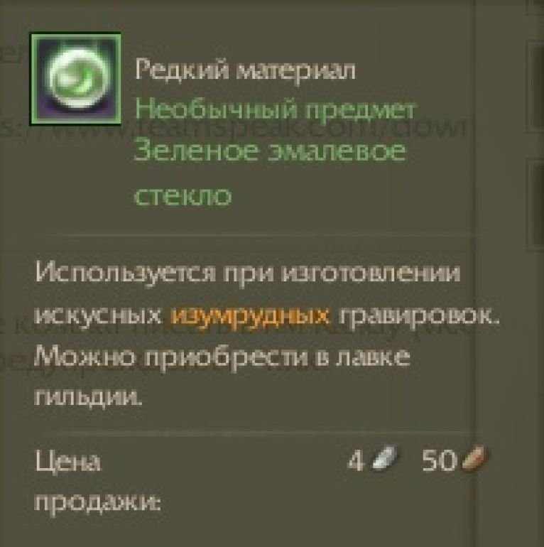 - Зеленое эмалевое стекло (30 вклада) — необходимо для создания искусных изумрудных гравировок.