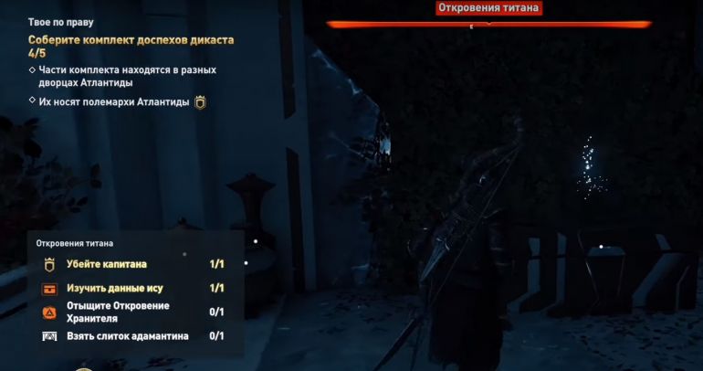 Изучите карту игрового мира и найдите коричневый маркер с восклицательным знаком, указывающий на это задание. Доберитесь до места и подберите записку рядом с трупом. Нужно собрать 5 частей доспехов дикаста. Чтобы это сделать, придется убить нескольких полемархов Атлантиды, которых можно встретить в разных дворцах. В описании целей задания в левом верхнем углу экрана будет показан значок, которым обозначены полемархи.