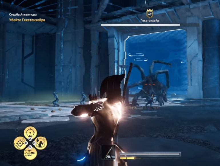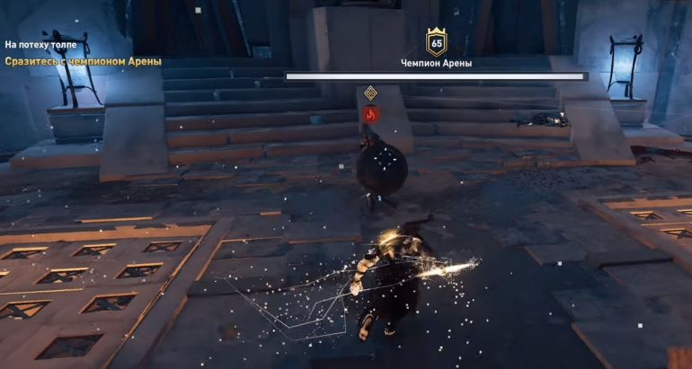 Теперь нужно помочь Гадиру, который находится в восточной части Круга Возможностей. Пообщайтесь с ним, затем согласитесь принять участие в бою. Сражаясь со стражниками Атлантиды, убейте двух из них, используя стрелы. К слову, делать это необязательно. После победы над стражами на арену выйдет чемпион. Сражайтесь с этим воином, пока не одержите победу. После этого нужно будет принять решение: пощадить чемпиона или убить его на глазах зрителей. Мы решили его пощадить.