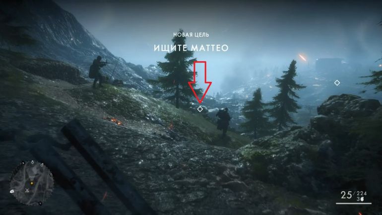 Когда отобьете аванпост Альпини, на карте появятся два маркера. Бегите к тому, что находится восточнее. В бункере вы отыщите не только отряд Маттео, но и очередной устав.