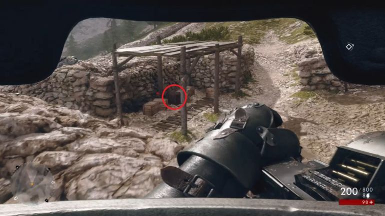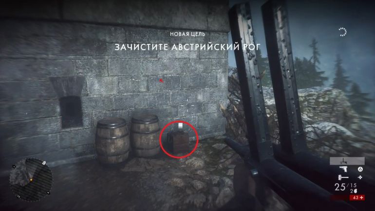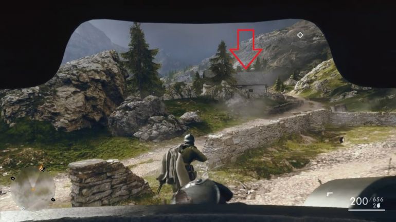 От этого здания двигайтесь на юго-восток (сюжетный маркер окажется справа от вас). Вскоре вы обнаружите укрепление австро-венгров — второй устав лежит там.