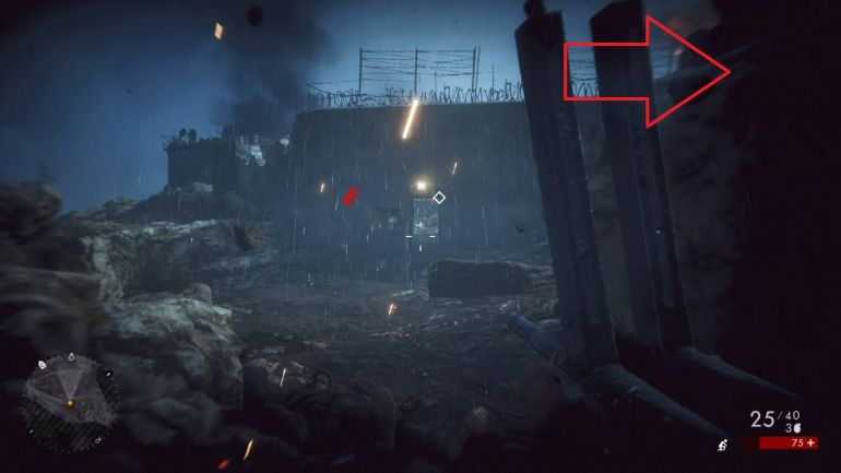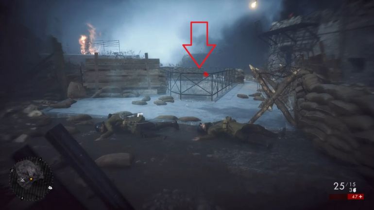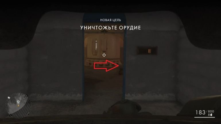 Бегите по единственной дороге к зенитному орудию. В этом месте поверните направо: