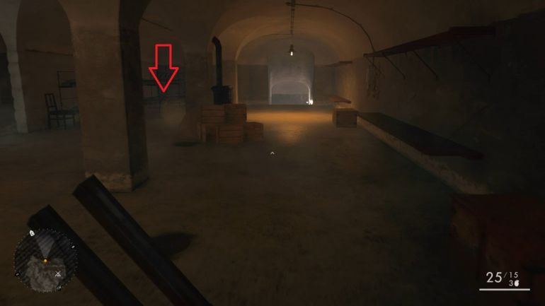 Возвращайтесь во внутренний двор, спускайтесь в подвал и бегите по единственному пути. Вскоре вы окажетесь в спальном помещении. Последний сундук спрятан между койками.