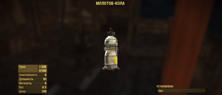 Молотов-кола (Nuka grenade) или Ядерная граната производит взрыв в виде ядерного гриба, совсем как при выстреле из Толстяка. Кроме того, цель получает дополнительный урон от радиации, соответственно наиболее