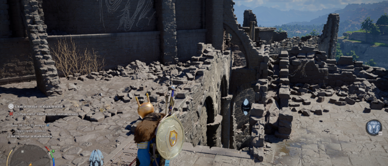 Расположение и решение головоломки Расположение святилища показано на скриншоте ниже: Убейте всех врагов вокруг святилища. После зачистки вы окажетесь среди руин. Двигайтесь вперед и спуститесь по правой лестнице