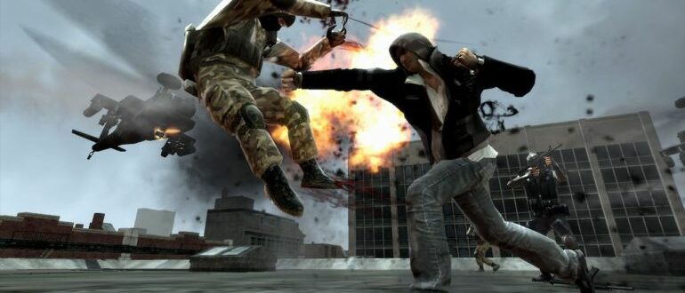 Для защиты от врагов можно использовать машины. Для атаки вертолетов можно залезть высокое здание, прыгнуть над вертолётом и влететь в него атакой с двумя кулаками. Когда вертолет опускается