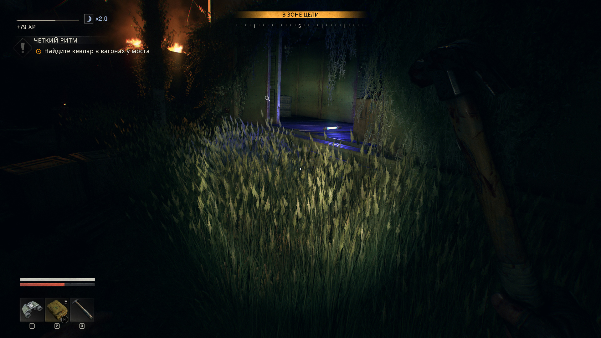Отправляйтесь по маркеру в промзону. Вагоны охраняют бандиты, так что действуйте осторожно. Вас интересует средний вагон (ночью освещен ультрафиолетом). Внутри придется взломать контейнер с нормальным замком, так что запаситесь отмычками (желательно берите получше обычных).