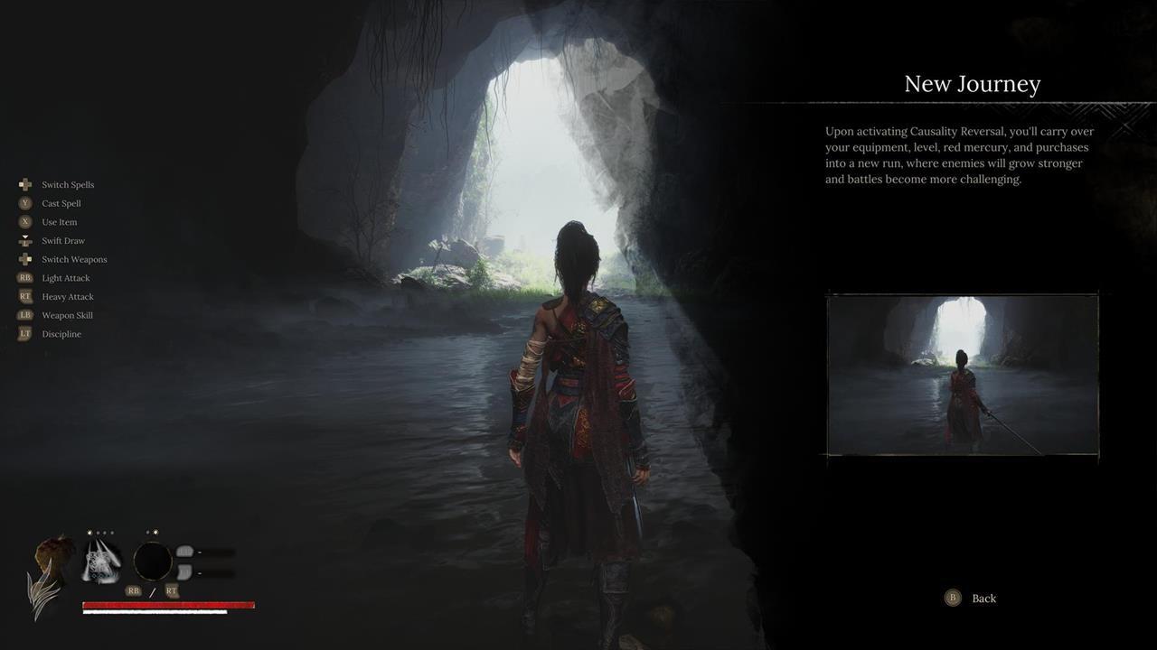 Доступ к Wuchang: Fallen Feathers открывается после завершения основного сюжета и получения одной из концовок. После финальных титров вы вернетесь в главное меню. Мы не можем показать скрин, но вы увидите новую опцию — Causality Reversal, именно так игра обозначает запуск NG+.