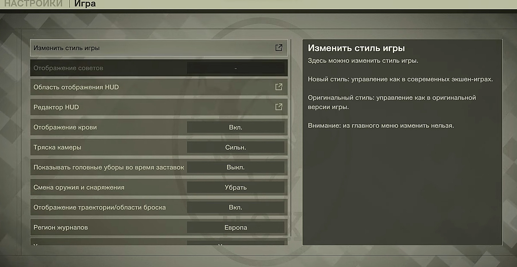 В Metal Gear Solid Delta: Snake Eater игроки могут переключаться между двумя игровыми стилями — «Новым» и «Оригинальным». Они отличаются не только схемой управления, но и видом камеры, а также некоторыми визуальными фильтрами. От выбора стиля зависит то, каким будет ваш опыт прохождения: более современным или ближе к классике.
