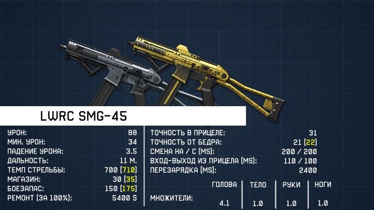 LWRC SMG-45 можно получить из коробок удачи за кредиты, в которой также находятся золотая версия и карта черного рынка. Также стоит отметить, что у данного пистолет-пулемета повышенные множители во все части тела: в голову 4,1 вместо обычных 4, а также единица по рукам и ногам. Это позволяет выносить врагов за минимальное количество попаданий.