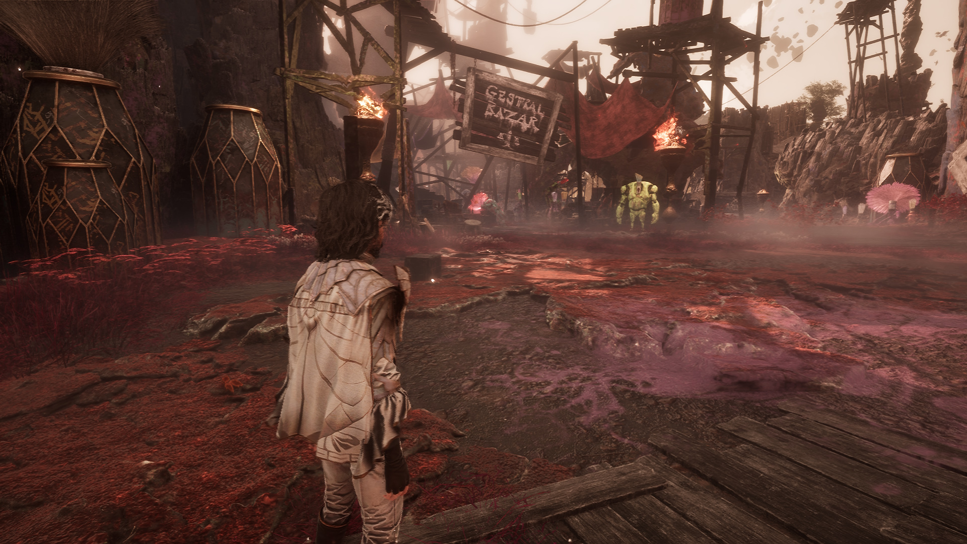 В начале стоит безымянный жестраль, у которого вы можете отремонтировать тот самый странный пиктос из пролога игры, который могли обменять на праздничный жетон на фестивале в честь Гоммажа.