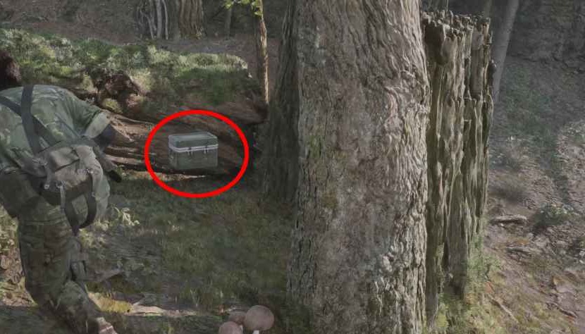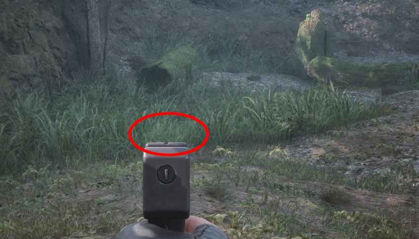 Оружие «Светошумовая граната» — рядом с предыдущей лягушкой. Пройдите вперед по тропе через траву, вдоль стены, и ищите предмет за большим пнем.