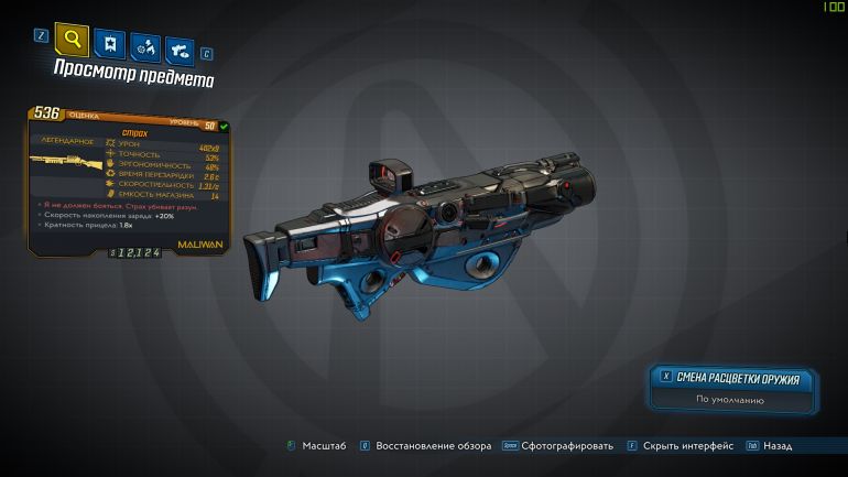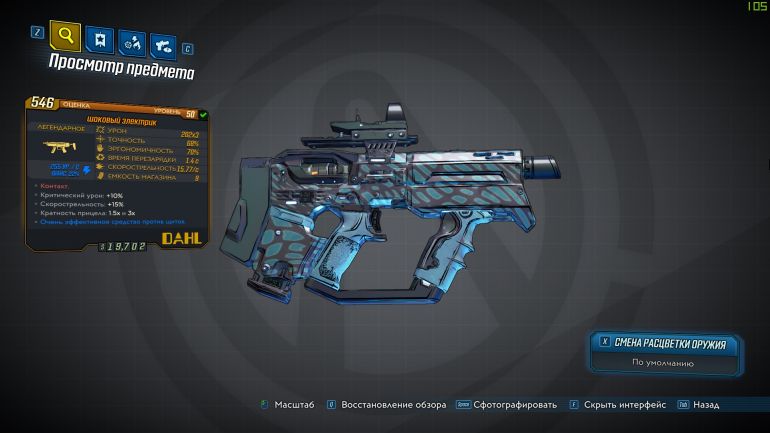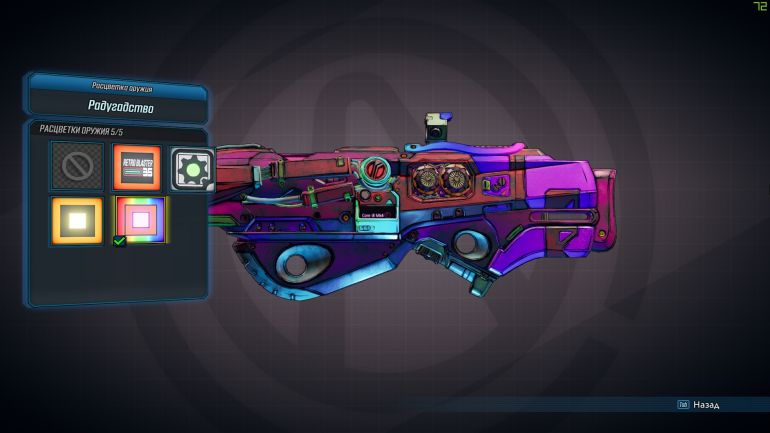 Оружие в Borderlands 3 можно кастомизировать только визуально. Чтобы изменить скин оружия, для начала вам нужно его получить или купить. Скины часто выпадают из сильных противников и боссов. Используйте полученный скин в инвентаре, затем выберите пушку и нажмите «Осмотреть» (клавиша F по умолчанию).