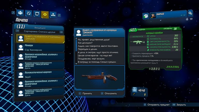 Наверняка этот вопрос возникает у игроков после того, как они замечают оповещение о новом письме в левом углу экрана. Чтобы прочитать полученное письмо, нажмите клавишу Esc, затем рядом с иконкой своего агента нажмите «Добавить друзей» (иконка с зеленым плюсиком). Перейдите в раздел «Почта» и прочтите интересующие вас письма. Здесь хранятся пушки, полученные за некоторые выполненные задания, и ваши достижения.