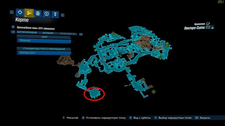 Чтобы найти эту пушку, вам нужно попасть на Прометею, в локацию «Лектра-Сити». Доберитесь до метки, как показано на нашей карте, затем спуститесь в метро и проследуйте к первой станции. Поверните налево и найдите запертую дверь, рядом с которой есть пять экранов. Напротив двери вы заметите несколько рычагов и вентиль. Поворачивайте вентиль и включайте рубильники поочередно, пока все телевизоры не включатся. Как только это произойдет, дверь откроется и герой встретится с боссом. Убейте его и заберите оружие.