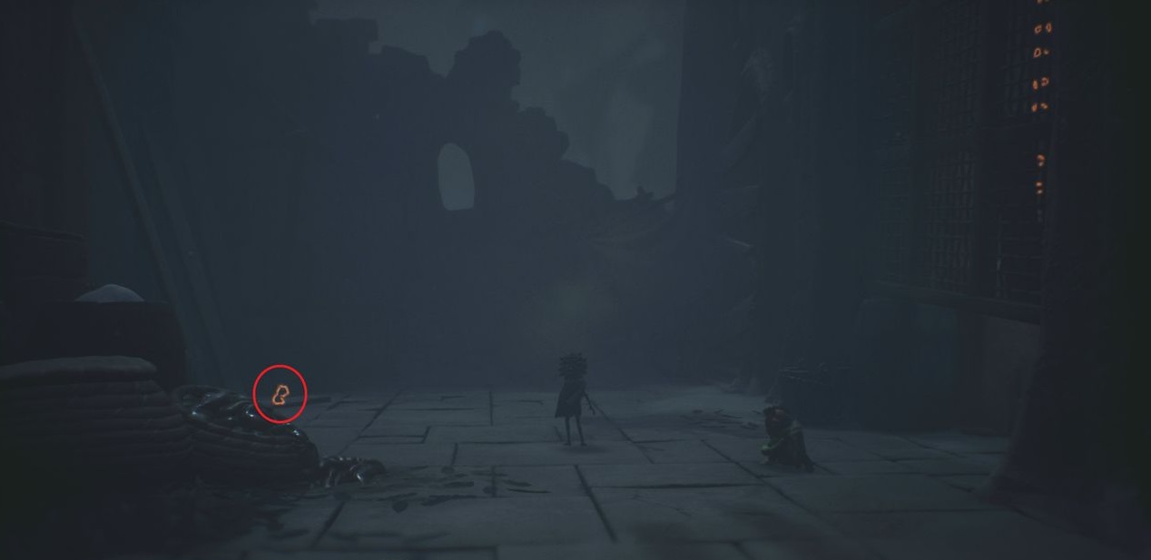 После того как спрячетесь от большого младенца, как только он уйдет с церковным колоколом, вы попадете в переулок. В конце этого переулка, с левой стороны находится последняя кукла первой главы «Некрополь». Подберите ее, чтобы получить достижение «Коробка с игрушками».
