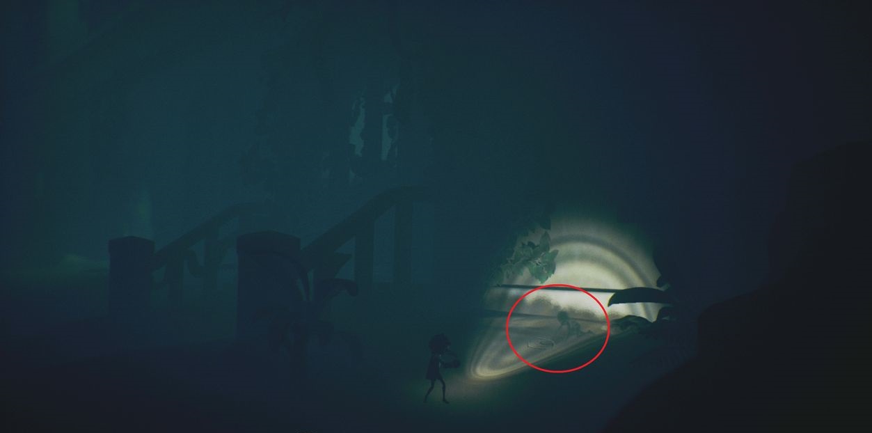 После того как обнаружите предыдущую статуэтку, пролезьте через деревянный забор и увидите колодец. Держитесь за рукоятку, чтобы спуститься на нижний уровень. Вы упадете в бассейн, полный зубных протезов. Выйдите из него и найдите куклу.