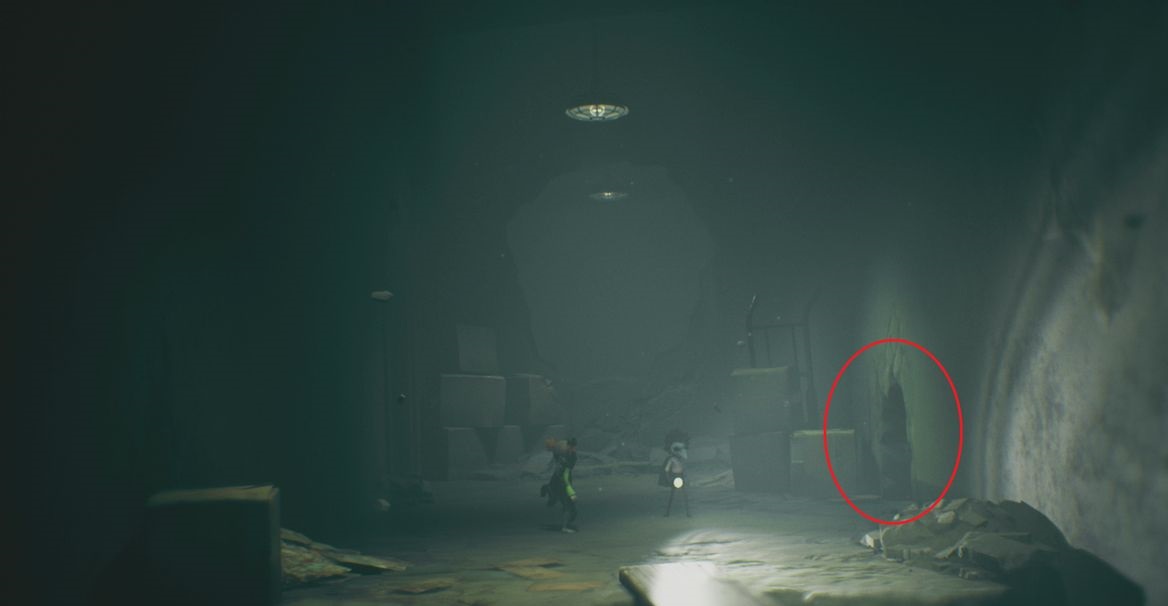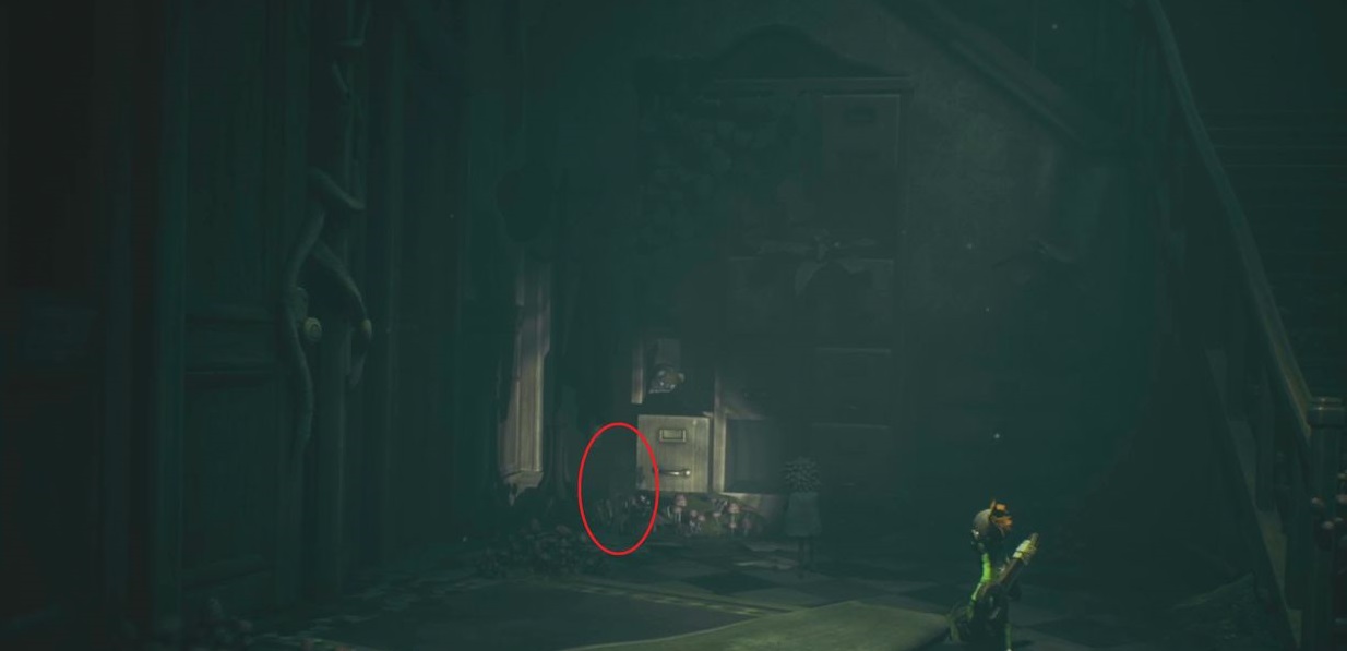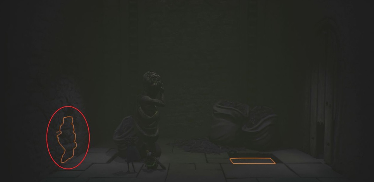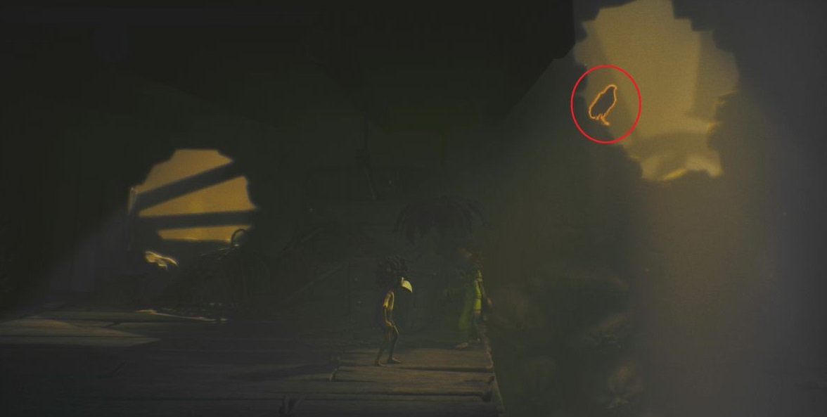 Впервые скрывшись от большого младенца, вы окажетесь на платформе, ведущей на нижний уровень. Вместо того чтобы идти в правую сторону, поверните налево, разрушьте стену и войдите в следующую комнату — здесь лежит кукла.