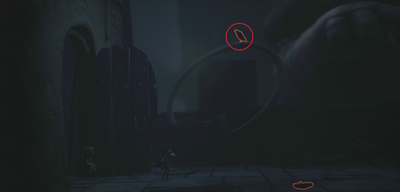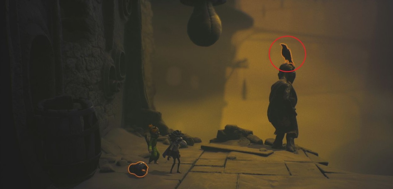 После того как покинете комнату с первой куклой и вороном, сможете увидеть сидящую на статуе вторую птицу.
