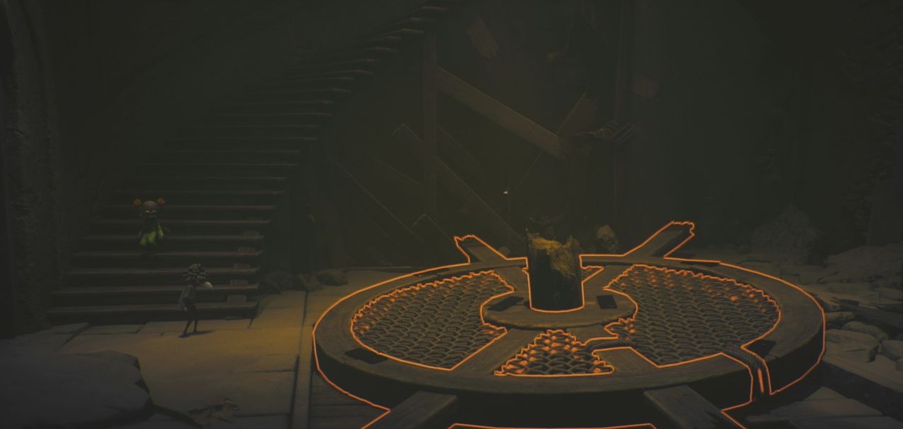Как только доберетесь до места, где нужно включить питание, чтобы сдвинуть большую скульптуру и перейти на следующий уровень, ищите второго Нома, который прячется за лестницей с левой стороны.