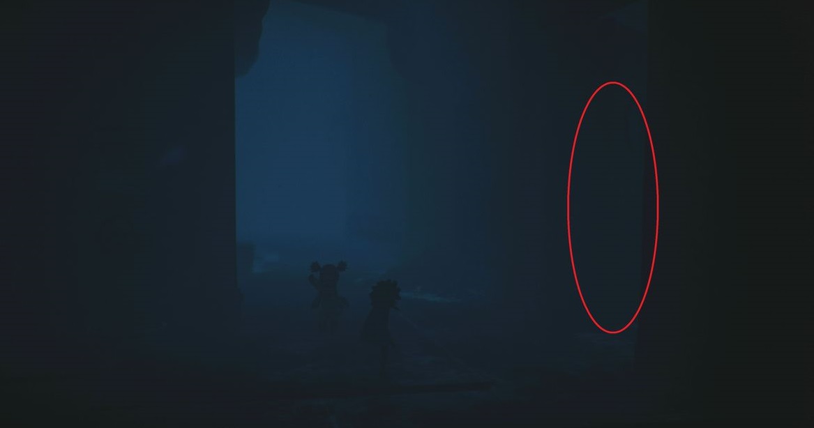 После того как большой младенец вас схватит, вы упадете в темную область. Сначала идите в левую сторону и, пробравшись через отверстие в стене, найдите куклу.
