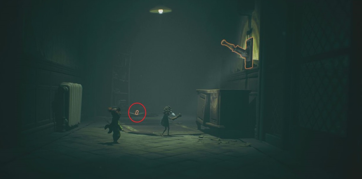 Сразу после предыдущей куклы воспользуйтесь лифтом. После этого увидите деревянную доску и отверстие справа. Пройдите через него, возьмите ключ из коробки, а в следующей комнате — последнюю куклу. За это вы получите достижения «То, что доктор прописал» и «Связующие нити».