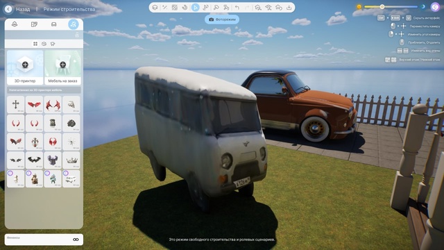 Функционал 3D-принтера основан на преобразовании двухмерных изображений в объёмные модели при помощи алгоритмов нейросетей. Этот инструмент доступен как в режиме строительства, так и в редакторе персонажей, а созданные объекты синхронизируются между всеми внутриигровыми режимами.