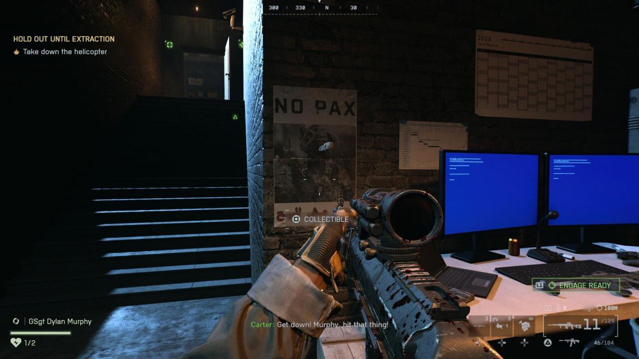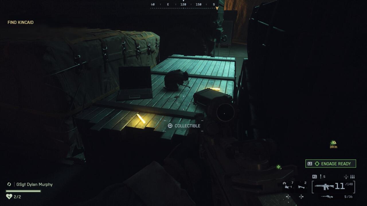 Последний жетон находится в бункере, куда вы попадете при отступлении. Там же получите задание по поиску Кинкейда. После короткой беседы, когда к вам вновь вернется управление, посмотрите на ящик с ноутбуком и шлемом — на нем лежит последний жетон главы и игры в целом.