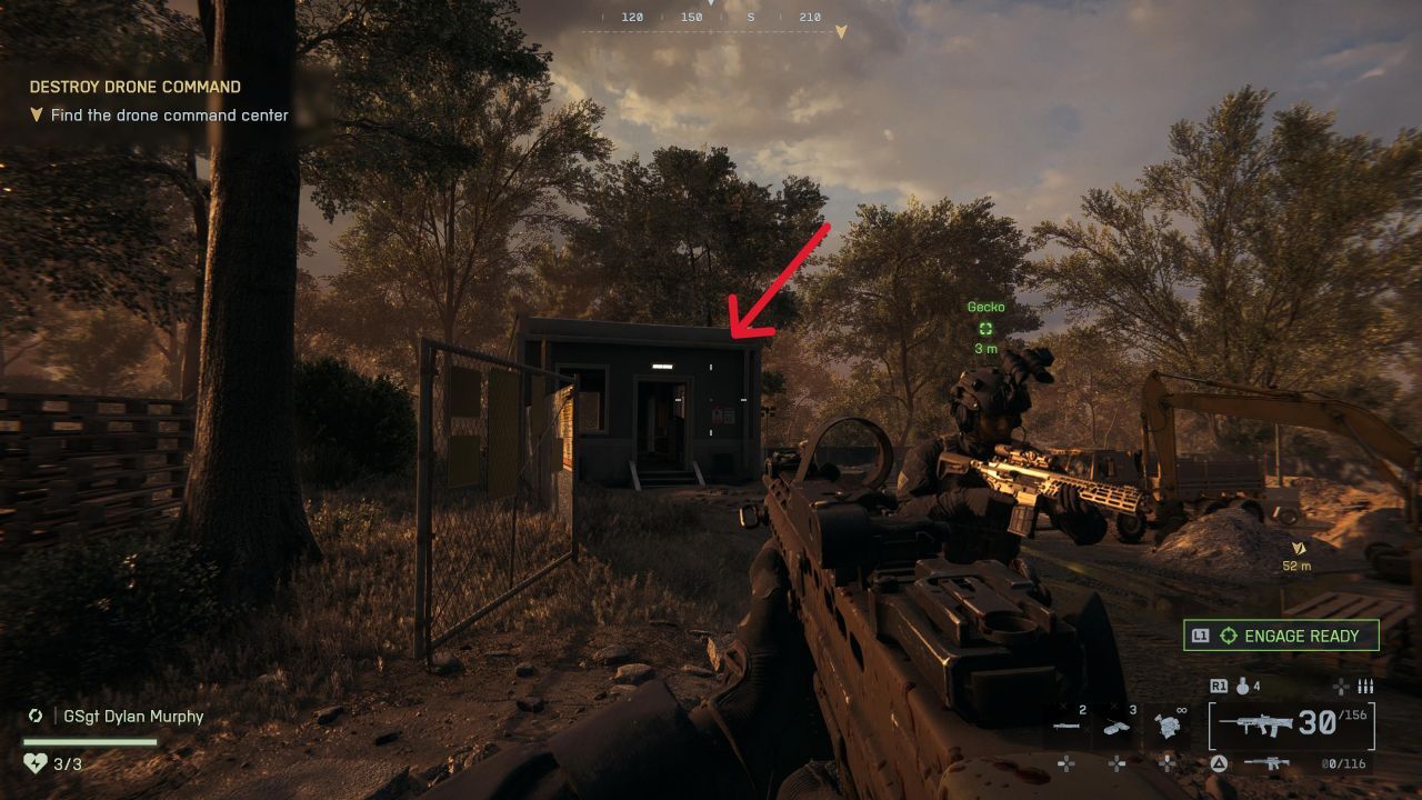 Когда получите задание на поиск центра управления дронами, будете идти через детскую площадку в парке. После того как расправитесь с врагами, подойдите к небольшому трейлеру со стоящей перед ним строительной техникой. Жетон лежит на полу трейлера, рядом с угловым столом в форме буквы L.
